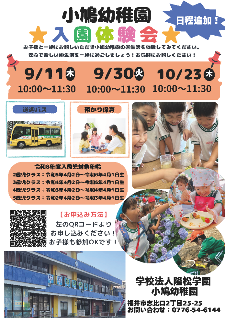 2021.12.212025.09.16 本園は私立幼稚園です。入園に関するお問い合わせは直接本園まで。 本園は私立幼稚園です。入園に関するお問い合わせは直接本園まで。 書類ダウンロード(保護者限定) ぽっぽclub 一緒にあそぼ! 芋掘り遠足 2025年10月2日 あさくら水の駅へ芋堀り遠足に出かけました。 一生懸命に土を掘… はぴりゅうが遊びに来ました〜! 2025年9月16日2025年9月16日 県のイベントで、はぴりゅうが来園!子どもたちは大喜びで一緒に… 絵本贈呈式★(ぴよひよ組・たんぽぽ組・ゆり組・ひかり組) 2025年9月9日2025年9月9日 エルパのAKUSHUの方から「つながる本ギフト」の取り組みで… 9月のクッキング(たんぽぽ組・ゆり組・ひかり組) 2025年9月9日2025年9月9日 今日は9月のクッキングでした★さぁ、お料理が始まりますよー!… 園長先生のパネルシアター★(ぽっぽクラブ・ぴよひよ・年少・年中・年長) 2025年9月5日 今日のぽっぽクラブは【園長先生のパネルシアター】でした♩午前… メモリアルうちわを作ろう!(ぽっぽCLUB)未就園児 2025年8月5日 今回のぽっぽCLUBは『メモリアルうちわ』を作りましたよ。 … 保護中: 夜までようちえん 2025年7月24日 この投稿はパスワードで保護されているため抜粋文はありません。 ★プラネタリウム★(ゆり組・ひかり組) 2025年7月7日2025年7月7日 7月7日今日は七夕です★ゆり組とひかり組で、セーレンプラネッ… 七夕参観がありました★(たんぽぽ組・ゆり組・ひかり組) 2025年7月7日2025年7月7日 さ〜さ〜のは さ〜らさら〜♩ 幼稚園で七夕参観がありました(… 書類ダウンロード(保護者限定) 芋掘り遠足 2025年10月2日 あさくら水の駅へ芋堀り遠足に出かけました。 一生懸命に土を掘… はぴりゅうが遊びに来ました〜! 2025年9月16日2025年9月16日 県のイベントで、はぴりゅうが来園!子どもたちは大喜びで一緒に… 絵本贈呈式★(ぴよひよ組・たんぽぽ組・ゆり組・ひかり組) 2025年9月9日2025年9月9日 エルパのAKUSHUの方から「つながる本ギフト」の取り組みで… 9月のクッキング(たんぽぽ組・ゆり組・ひかり組) 2025年9月9日2025年9月9日 今日は9月のクッキングでした★さぁ、お料理が始まりますよー!… 園長先生のパネルシアター★(ぽっぽクラブ・ぴよひよ・年少・年中・年長) 2025年9月5日 今日のぽっぽクラブは【園長先生のパネルシアター】でした♩午前… メモリアルうちわを作ろう!(ぽっぽCLUB)未就園児 2025年8月5日 今回のぽっぽCLUBは『メモリアルうちわ』を作りましたよ。 … 保護中: 夜までようちえん 2025年7月24日 この投稿はパスワードで保護されているため抜粋文はありません。 ★プラネタリウム★(ゆり組・ひかり組) 2025年7月7日2025年7月7日 7月7日今日は七夕です★ゆり組とひかり組で、セーレンプラネッ… 七夕参観がありました★(たんぽぽ組・ゆり組・ひかり組) 2025年7月7日2025年7月7日 さ〜さ〜のは さ〜らさら〜♩ 幼稚園で七夕参観がありました(…